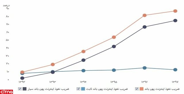 از طرفی ضریب نفوذ اینترنت پهنباند مطابق آخرین آمار تا پایان شهریورماه سال جاری، ۸۶.۸۰ درصد است که شامل ۱۲.۲۳ درصد اینترنت پهن باند ثابت و ۷۴.۵۸ درصد ضریب نفوذ پهنباند سیار میشود.