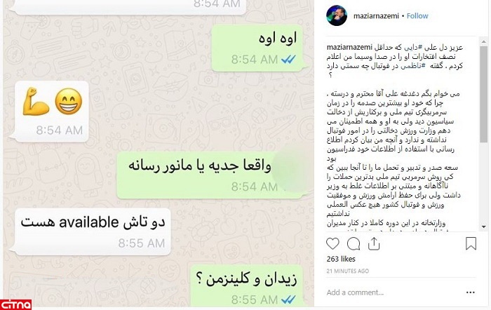 مازیار ناظمی جواب علی دایی را در اینستاگرام داد