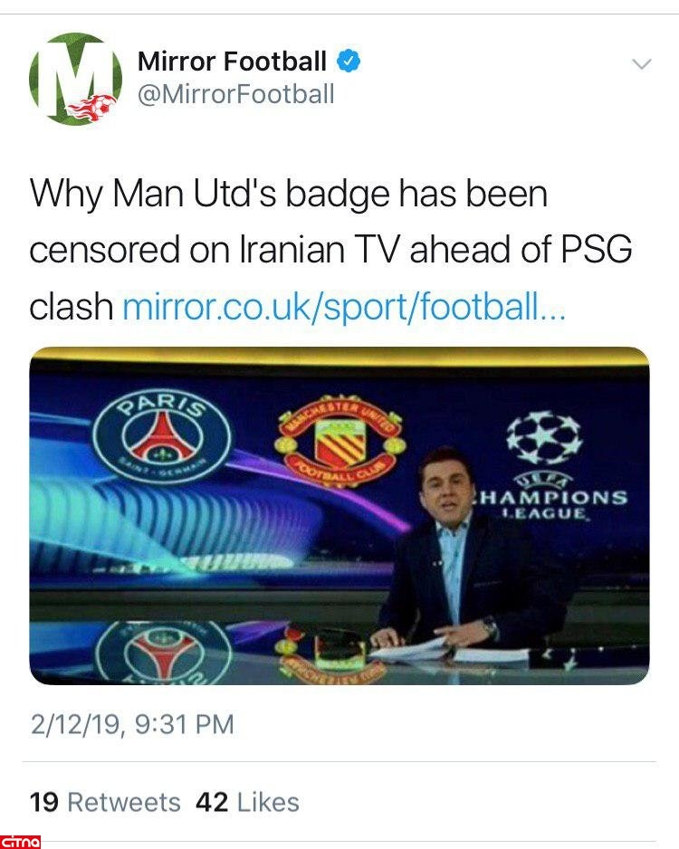در حالیکه برخی اعتقاد دارند این اقدام سانسور از طرف صدا و سیما بوده، صفحه رسمی توئیتر نشریه میرور انگلیس هم نسبت به همچین اتفاقی واکنش نشان داده و نوشته: چرا لوگوی منچستر در تلویزیون ایران سانسور شد؟