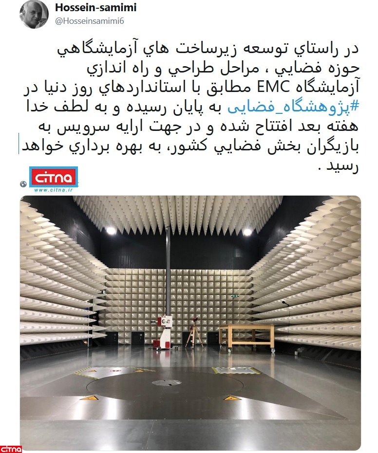در راستای توسعه زیرساخت های آزمایشگاهی حوزه فضایی ، مراحل طراحی و راه اندازی آزمایشگاه EMC مطابق با استانداردهای روز دنیا در #پژوهشگاه_فضایی به پایان رسیده و به لطف خدا هفته بعد افتتاح شده و در جهت ارایه سرویس به بازیگران بخش فضایی کشور، به بهره برداری خواهد رسید.