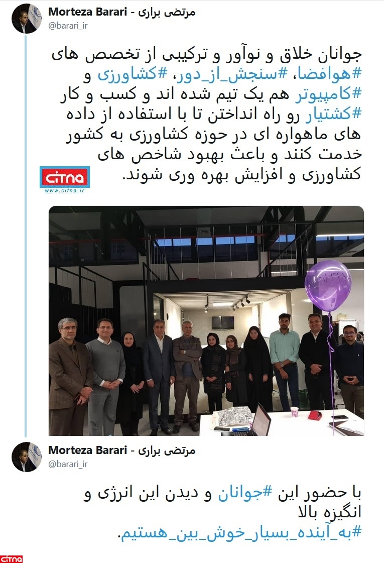 به گزارش سیتنا، دکتر مرتضی براری، معاون وزیر ارتباطات و رییس سازمان فضایی ایران، توئیت کرد:
