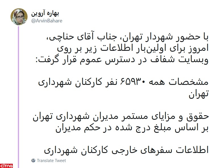 با حضور شهردار تهران، جناب آقای حناچی، برای اولینبار اطلاعات زیر بر روی وبسایت شفاف در دسترس عموم قرار گرفت: