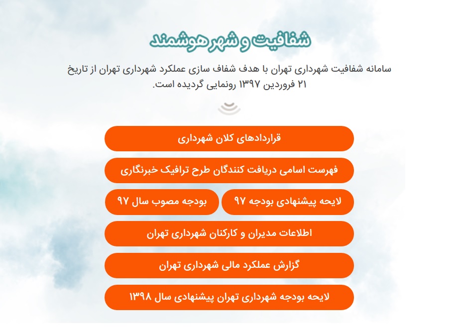 گفتنی است؛ سامانه شفاف شهرداری تهران به نشانی shafaf.tehran.ir در دسترس شهروندان قرار دارد. سایت شفاف سال جاری توسط مدیران شهری ایجاد شد و قراردادهای کلان شهرداری نیز در آن بارگذاری می شود.