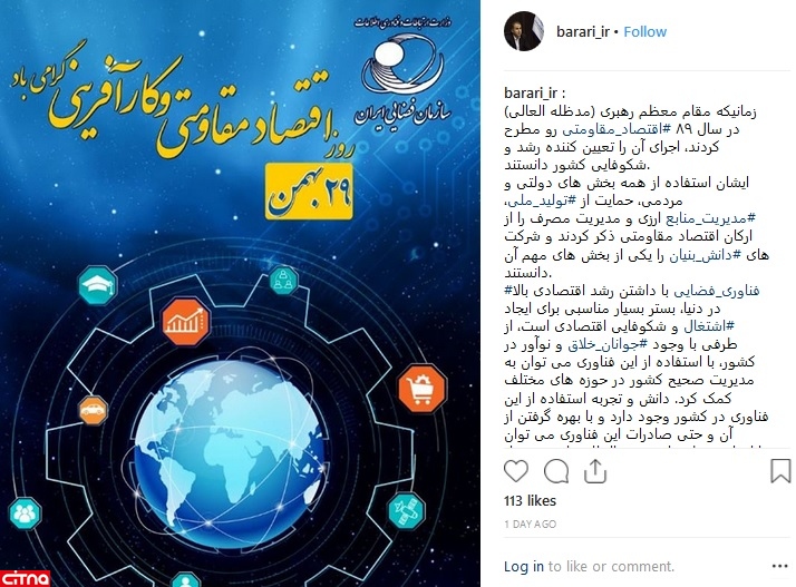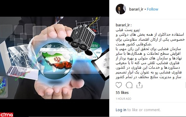 به گزارش سیتنا، دکتر مرتضی براری، معاون وزیر ارتباطات و رییس سازمان فضایی ایران، در اینستاگرامش نوشت: