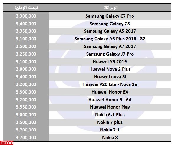به گزارش سیتنا، لیست گوشی همراه ۳ میلیون تومانی در بازار به شرح زیر است: