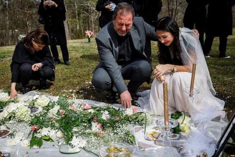 اشکهای دختر ایرانی با لباس عروس سر مزار نامزد مقتولش در آمریکا