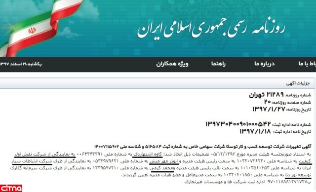 البته ۱۸ فروردین ۹۷، تمامی اعضای هیاتمدیره توسکا تغییر کردند و به این ترتیب محمد کرمی بعنوان مدیرعامل، کاوه اشتهاردی بعنوان رئیس هیاتمدیره و ابوذر مهرمنش بعنوان عضو هیاتمدیره در این شرکت شروع به فعالیت کردند. نکته مهم این بود که کاوه اشتهاردی، عضو هیاتمدیره شرکت بنیاد برکت احسان وابسته به ستاد اجرایی فرمان امام (ره) است.