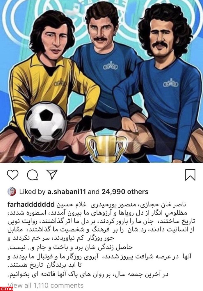 به گزارش سرویس وبگردی سیتنا، در آخرین پنجشنبه سال 1397 فرهاد مجیدی تصویری از اسطوره های از دنیا رفته باشگاه استقلال در صفحه اینستاگرام خودش منتشر کرد و یاد آنها را زنده نگه داشت.