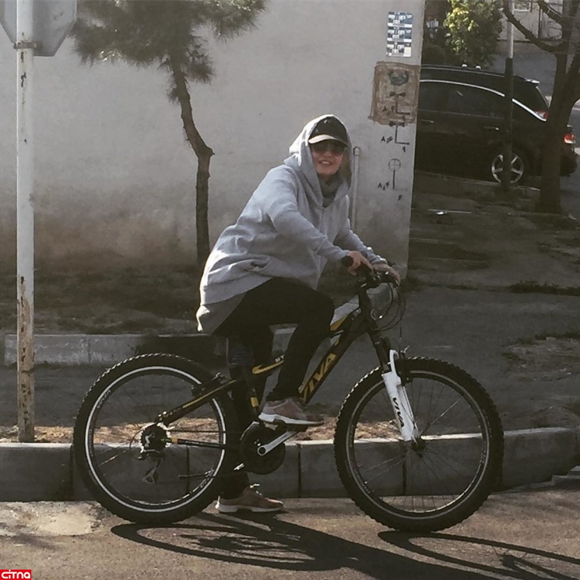 عکسی از دوچرخه سواری مهناز افشار در هوای عالی تهران