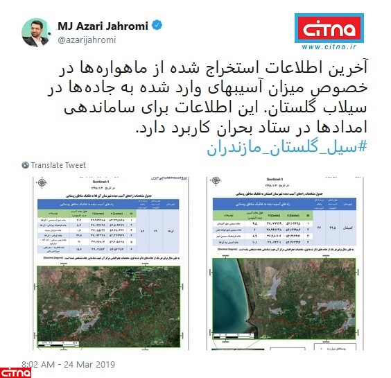 آخرین اطلاعات استخراج شده از ماهوارهها در خصوص میزان آسیبهای وارد شده به جادهها در سیلاب گلستان توسط وزیر ارتباطات منتشر شد.
