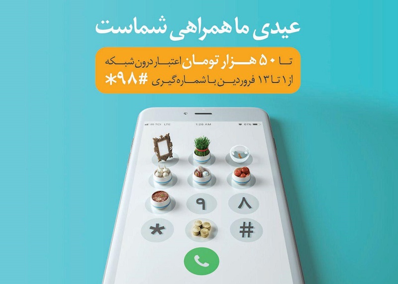 به مناسبت آغاز بهار طبیعت و عید نوروز، همراه اول به تمامی مشترکان دائمی و اعتباری خود در ۵ مبلغ متفاوت تا ۵۰۰ هزار ریال عیدی می دهد.