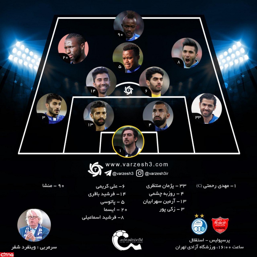 ترکیب استقلال در بازی برابر پرسپولیس به شرح زیر است:
