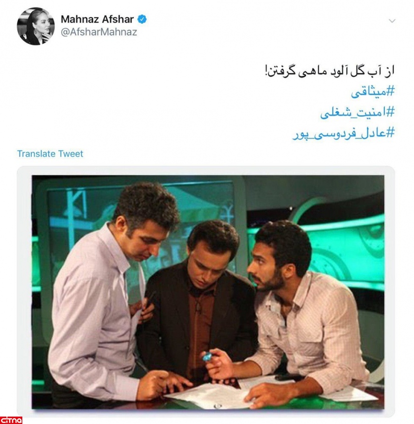 مهناز افشار بازیگر مطرح سینما در توییتر کنایه ای به محمدحسین میثاقی و برنامه فوتبال برتر انداخت.