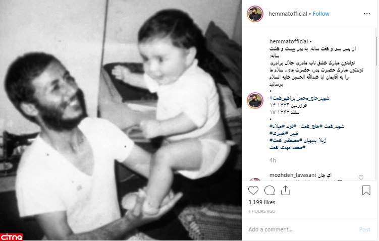 محمدمهدی همت در پستی اینستاگرامی، تولد پدرش را تبریک گفت. او که ۳۷ سال دارد، در این پیام، به شهادت پدرش در ۲۸ سالگی اشاره کرد.