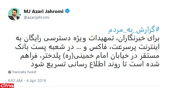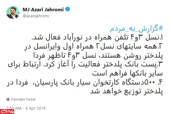 وزیر ارتباطات و فناوری اطلاعات در توئیتی دیگر خاطرنشان کرد: