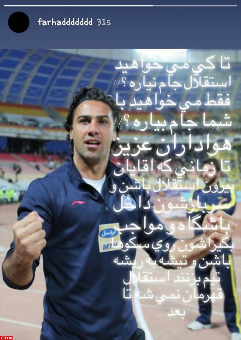 پست مشخص فرهاد برای مخاطب خاص؛ جنگ استقلالی ها علنی شد