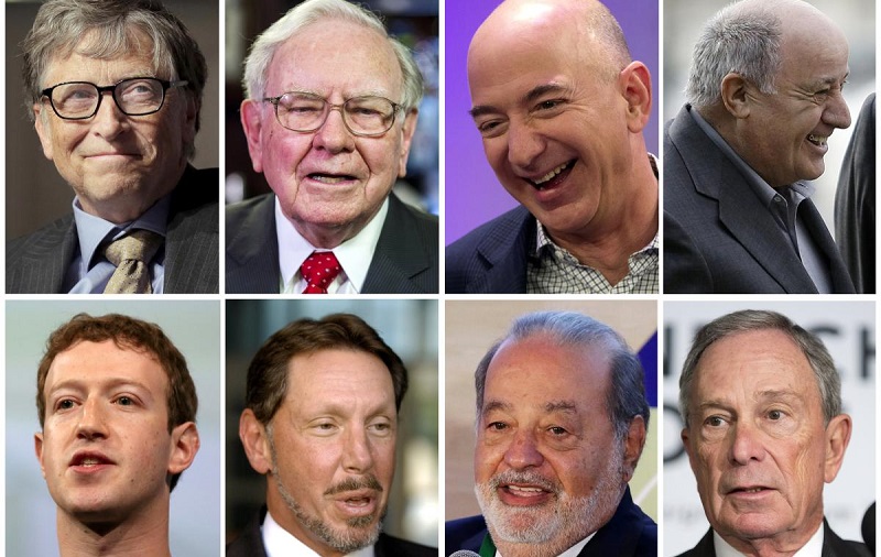 در حال حاضر هر سه نفر اول ثروتمند جهان امریکایی هستند: جف بزوس: مدیر عامل و بنیانگذار فروشگاه اینترنتی آمازون که بزرگترین فروشگاه اینترنتی جهان است با ۱۳۱ میلیارد دلار ثروت کماکان ثروتمندترین فرد جهان است. بیل گیتس، بنیانگذار شرکت مایکروسافت با ۹۶.۵ میلیارد دلار ثروت و وارن بافت، بزرگترین معاملهگر بورسی تاریخ جهان که ثروت او ۸۲.۵ میلیارد دلار برآورد شده است.