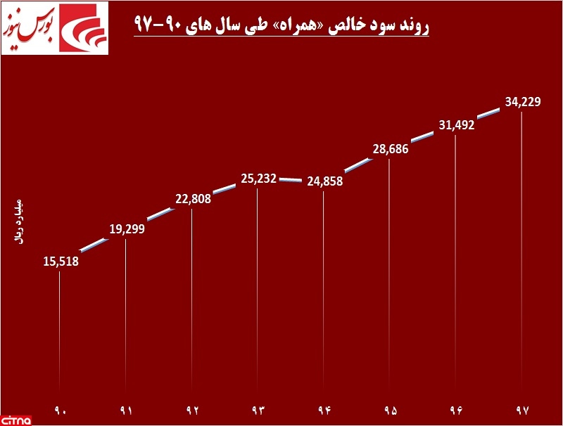 به گزارش سیتنا به نقل از بورس نیوز، شرکت «ارتباطات سیار ایران» موسوم به «همراه اول» در سال 97 موفق به تحقق 34228 میلیارد ریال سود خالص گردید که در مقایسه با سال 96 رشد 9 درصدی را نشان میدهد.