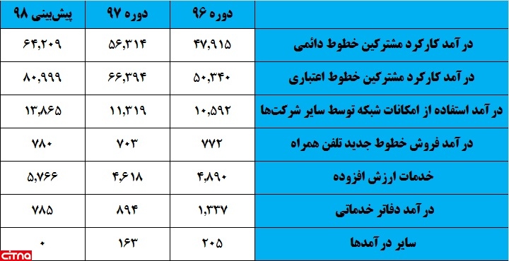 در بخشهای کارکرد مشترکین خطوط دائمی و اعتباری و اتصال متقابل، درآمدها رشد داشته اما در زمینههای فروش خطوط جدید، خدمات ارزش افزوده و درآمد دفاتر خدماتی افت داشته است. افت این سه بخش درآمدی نشان میدهد که بازار مصرف خطوط جدید تا حدودی رو به کاهش گذاشته و کاهش درآمد دفاتر خدماتی نیز خود مؤید این موضوع است. از سوی دیگر، مشترکین دیگر مانند گذشته تمایلی به استفاده از خدمات ارزش افزوده ندارند.