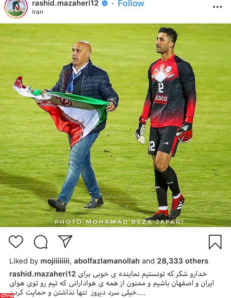دروازهبان خوب ذوبآهن که با چند واکنش خوب و البته مهار پنالتی اشکان دژاگه سهم ویژهای در این پیروزی داشت بعد از پایان بازی در یک پست اینستاگرامی نوشت: