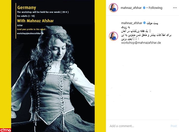 شش روز پیش، مهناز افشار با انتشار یک پست اینستاگرامی، اعلام کرده بود در سفری به آلمان در یک ورکشاپ شرکت خواهد کرد و امروز به طور غیر رسمی خبر آمد او ممنوعالخروج شده است.