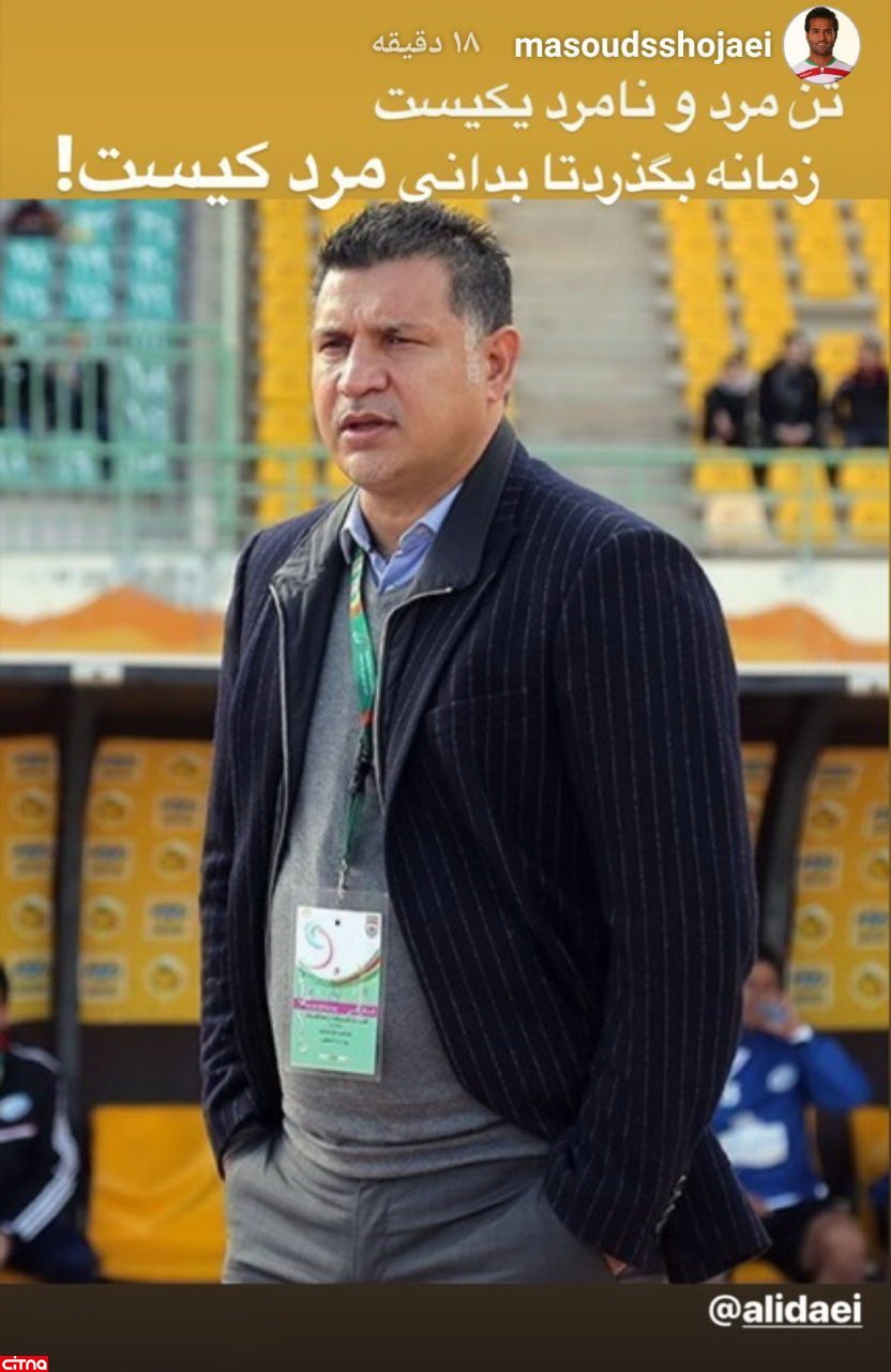 به گزارش سرویس وبگردی سیتنا، مسعود شجاعی، کاپیتان تراکتورسازی در حمایت از علی دایی، سرمربی پیشین سایپا در استوری اینستاگرامش نوشت: