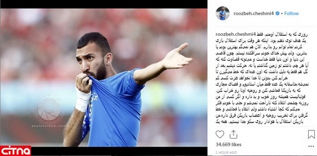 پست روزبه چشمی در مورد شادی گل جنجالی