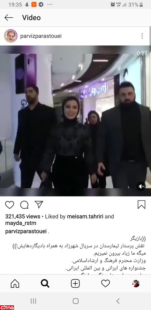 به گزارش سرویس وبگردی سیتنا، پرویز پرستویی در این پست که در واکنش به تصویر بازیگر زن سریال شهرزاد (بازیگر نقش پرستار تیمارستان) به همراه بادیگاردهایش بود انتقادات تندی را به سینما وارد دانست و نوشت: