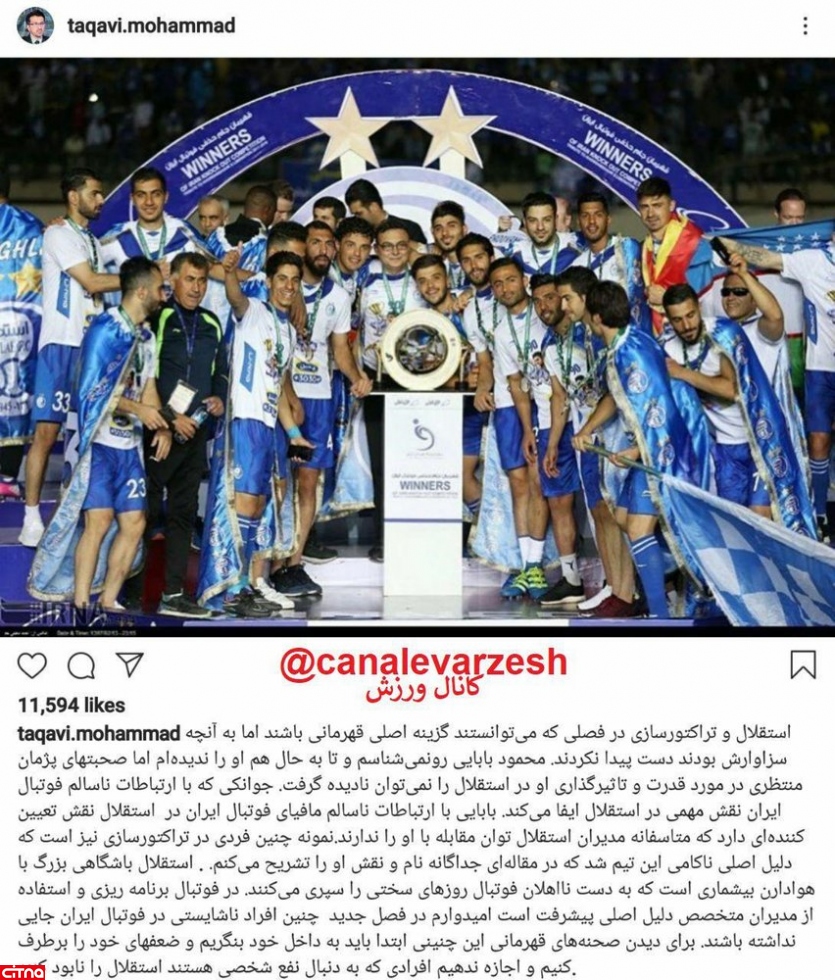 جدیدترین پست تقوی با حمله به دو آدم پشت پرده در استقلال و تراکتور!
