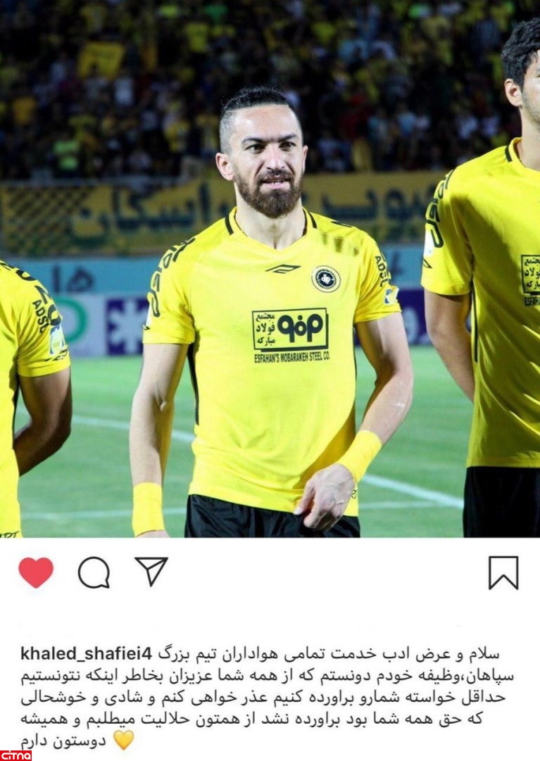 به گزارش سرویس وبگردی سیتنا، خالد شفیعی که ابتدای فصل به همراه امیر قلعه نویی به سپاهان آمده بود حالا با انتشار خبری، جداییش از زردپوشان اصفهان را اعلام کرد. او در صفحه اینستاگرامش نوشت:
