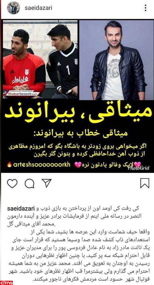 سعید آذری با انتشار تصویری در صفحه اینستاگرام خود از حرفهای محمدحسین میثاقی انتقادات صریحی کرد.