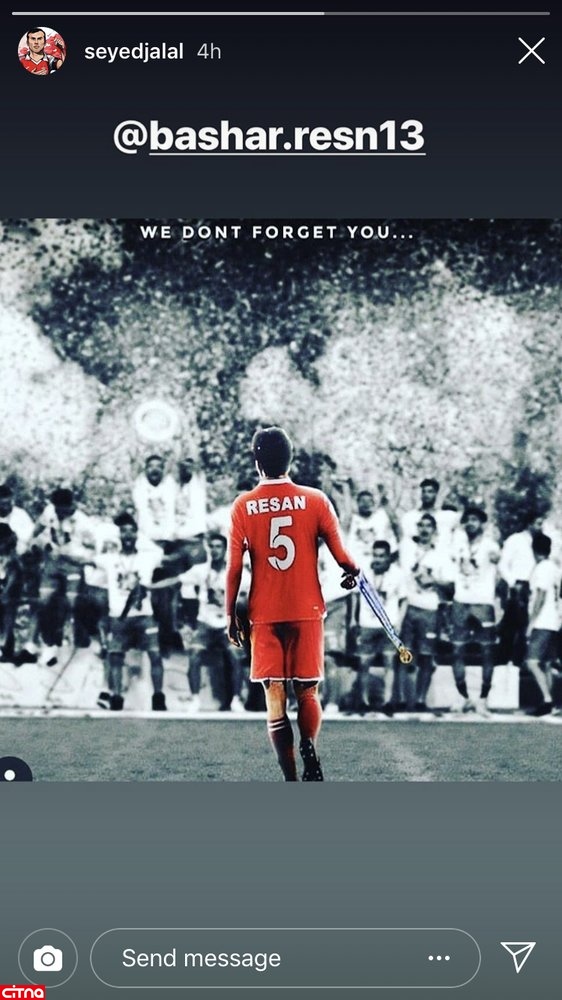 در همین رابطه حالا سیدجلال حسینی تصویر زیر را در صفحه اینستاگرام خودش منتشر کرده. تصویری که بالای آن عبارت "فراموشت نمی کنیم" نوشته شده و بحث رفتن رسن را جدی تر می کند. البته که خیلی ها اعتقاد دارند این استوری سیدجلال فقط برای تشکر از رسن و زنده کردن یاد اوست که در بازی فینال حذفی به دلیل مصدومیت کنار تیم نبود.