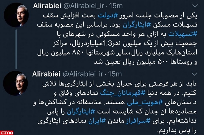 دکتر علی ربیعی، سخنگوی دولت روایتی توئیتری از مصوبه امشب هیئت وزیران داشته است.