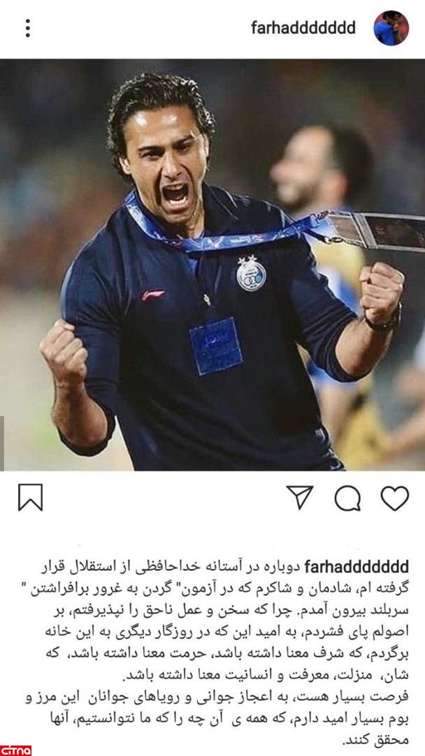 به گزارش سرویس وبگردی سیتنا، فرهاد مجیدی پس از قبول هدایت تیم ملی امید کشورمان، درباره جدایی از استقلال در صفحه اینستاگرامش نوشت:
