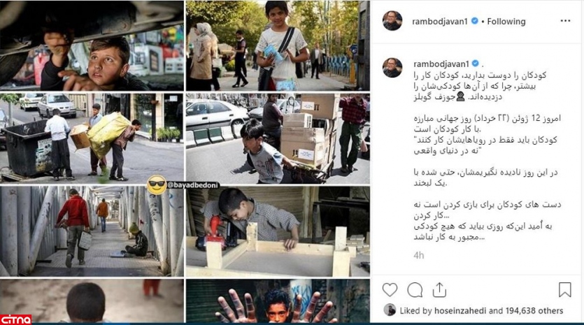 به گزارش سرویس وبگردی سیتنا، رامبد جوان در تازه ترین پست اینستاگرامی خود درباره کودکان کار نوشت: