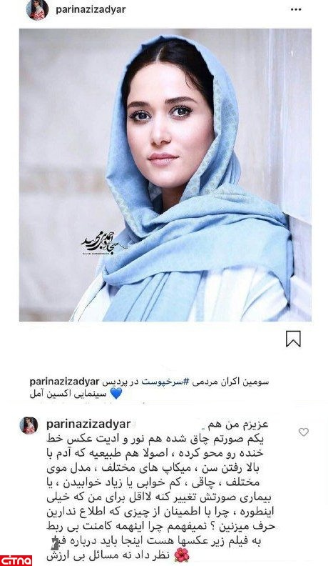 پریناز ایزدیار با ارائه توضیحاتی درباره علل تغییر چهرهاش، از کامنتهای بیربطی که برخی از کاربران در زیر پستهای مربوط به فیلم «سرخپوست» میگذارند، انتقاد کرد.