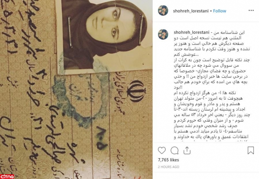 به گزارش سرویس وبگردی سیتنا، شهره لرستانی بازیگر پیشکسوت سینما و تلویزیون با انتشار تصویری از صفحه اول شناسنامهاش در اینستاگرام، درباره زندگی خود نوشت:
