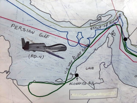 به گزارش سیتنا، وزیر امور خارجه ایران در توئیتر نوشت: «در ساعت ۱۴:۰۰ پهپاد آمریکایی در حالت پنهان از امارات پرواز کرد و حریم هوایی ایران را نقض کرد. این پهپاد در ساعت ۰۴:۰۵ در مختصات 25°59'43"N 57°02'25"E در نزدیک کوه مبارک هدف قرار گرفت. ما قطعات پهپاد نظامی آمریکا را در آبهای قلمرو خودمان، جایی که این پهپاد ساقط شد جمعآوری کردهایم.»