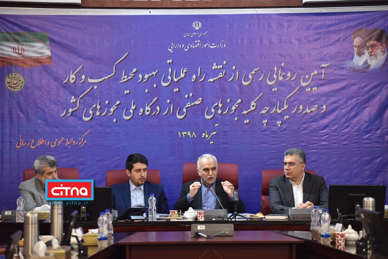 آیین رونمایی رسمی از نقشه راه عملیاتی بهبود محیط کسبوکار و صدور یکپارچه همه مجوزهای صنفی از درگاه ملی مجوزهای کشور با حضور وزیر امور اقتصاد و دارایی، رئیس اتاق اصناف و تنی چند از مدیران ارشد سایر وزارتخانهها برگزار شد.