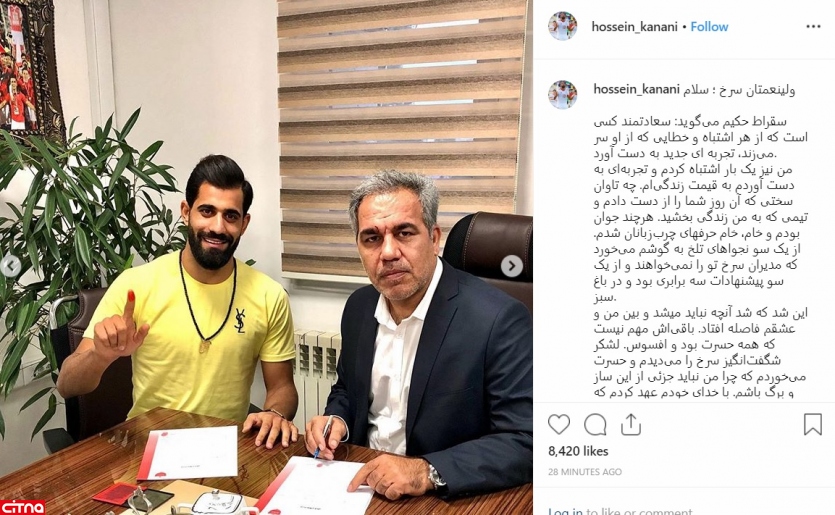سقراط حکیم میگوید: سعادتمند کسی است که از هر اشتباه و خطایی که از او سر میزند، تجربهای جدید به دست آورد. من نیز یک بار اشتباه کردم و تجربهای به دست آوردم به قیمت زندگیام. چه تاوان سختی که آن روز شما را از دست دادم و تیمی که به من زندگی بخشید. هرچند جوان بودم و خام، خام حرفهای چربزبانان شدم. از یک سو نجواهای تلخ به گوشم میخورد که مدیران سرخ تو را نمیخواهند و از یک سو پیشنهادات سه برابری بود و در باغ سبز.