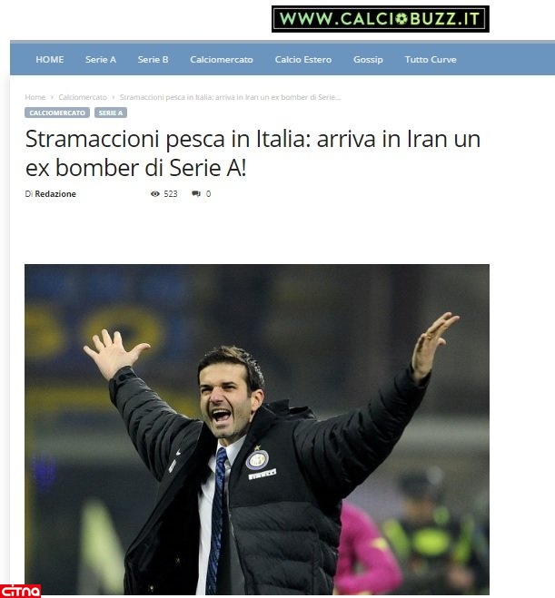 در این مقاله که تحت عنوان «ماهیگیری استراماچونی در ایتالیا؛ یک بمبافکن سابق سری آ به ایران میرود» به تلاش سرمربی جدید آبیپوشان برای به خدمت گرفتن گلزنی از لیگ کشورش دارد.