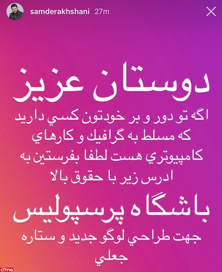 سام درخشانی با انتشار متنی کنایهآمیز، از مخاطبانش خواست تا یک طراح را جهت طراحی لوگوی جدید پرسپولیس به این باشگاه معرفی کنند.