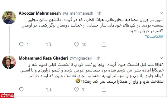 امروز در جریان مصاحبه مطبوعاتی، هیات قطری که در گرمای دلنشین سالن مجاور نشسته بودند در گپهای خودمانیشان حسابی از خجالت دوستان برگزارکننده در اومدن. گفتم در جریان باشید.
