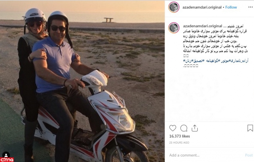 به گزارش سرویس وبگردی سیتنا، آزاده نامداری، مجری تلویزیون در پست اینستاگرام خود به اظهار نظر درباره موتورسواری بانوان در کشور پرداخت و نوشت: