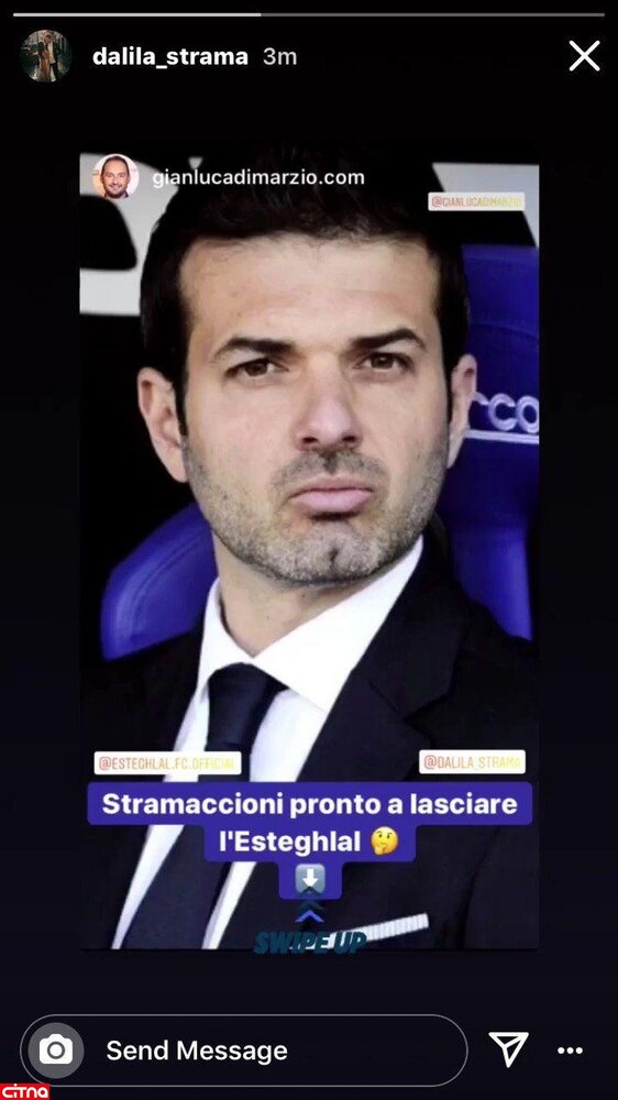 در حالیکه هیچکس در ایران و در بین طرفداران استقلال فکرش را نمی کرد حالا زمزمه های استعفای آندره استراماچونی از سمت خودش مطرح شده. این خبری بود که جانلوکا دیمارزیو، خبرنگار مطرح ایتالیایی دقایقی پیش در صفحه توئیتر خودش آن را منتشر کرد. جالب تر اینکه دقایقی قبل همسر آندره استراماچونی با گذاشتن استوری زیر در صفحه اینستاگرام خودش نسبت به خبر دیمارزیو واکنش نشان داد و به نوعی یکبار دیگر خبر استفعای احتمالی همسرش از سرمربیگری استقلال را منتشر کرد. البته که این عکس خیلی زود از صفحه همسر استراماچونی پاک شد.