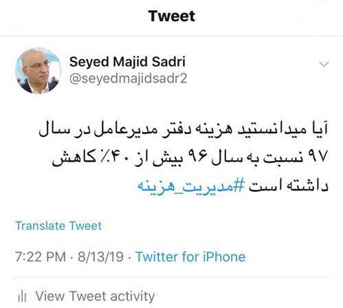 آیا میدانستید هزینه دفتر مدیرعامل در سال ۹۷ نسبت به سال ۹۶ بیش از ۴۰٪ کاهش داشته است