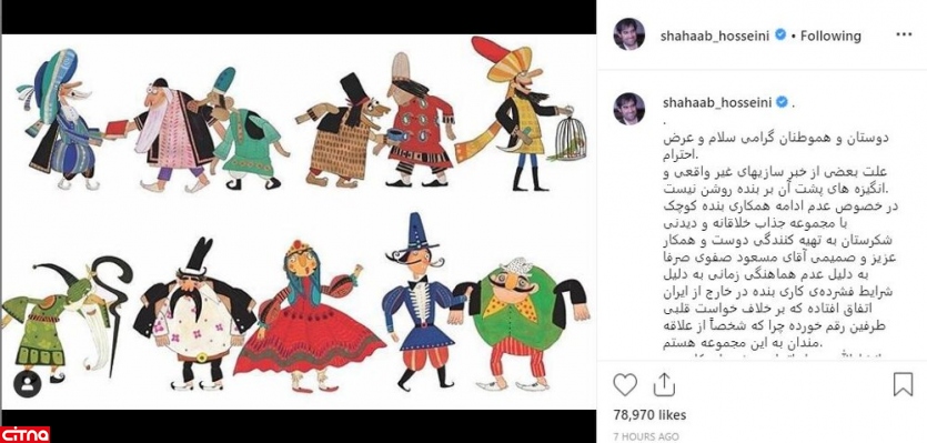 پست شهاب حسینی در واکنش به خبر جداییاش از «شکرستان» به دلیل همکای با بهروز وثوقی
