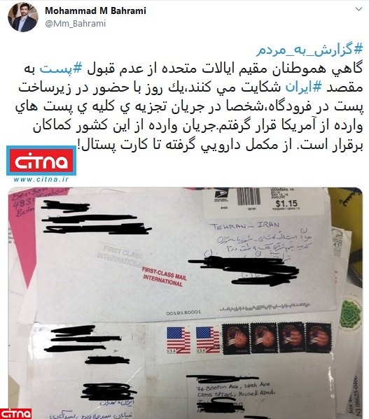مدیرکل دفتر امور پست بین الملل شرکت ملی پست ایران، اعلام کرد: گاهی هموطنان مقیم ایالات متحده از عدم قبول پست به مقصد ایران شکایت می کنند، طی بررسی مشخص شد که جریان وارده از این کشور کماکان برقرار است.