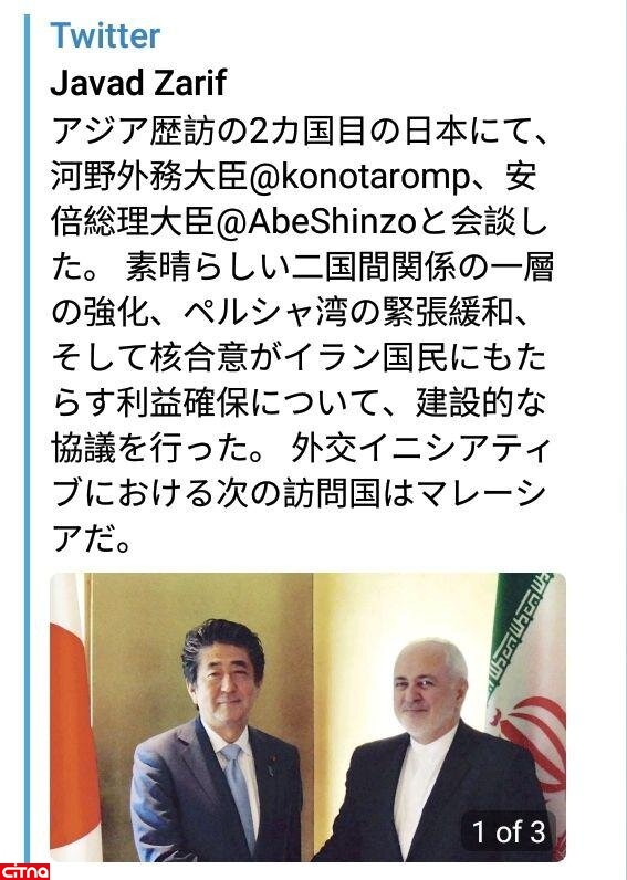 وزیر امور خارجه کشورمان توئیتی را پس از گفتگوهای سازنده خود با مقامات ارشد ژاپنی به به زبان ژاپنی منتشر کرد.