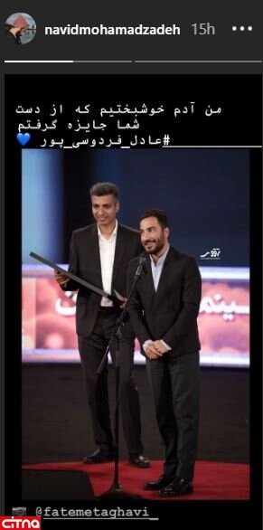 واکنش اینستاگرامی نوید محمدزاده به دریافت جایزه از دستان فردوسیپور
